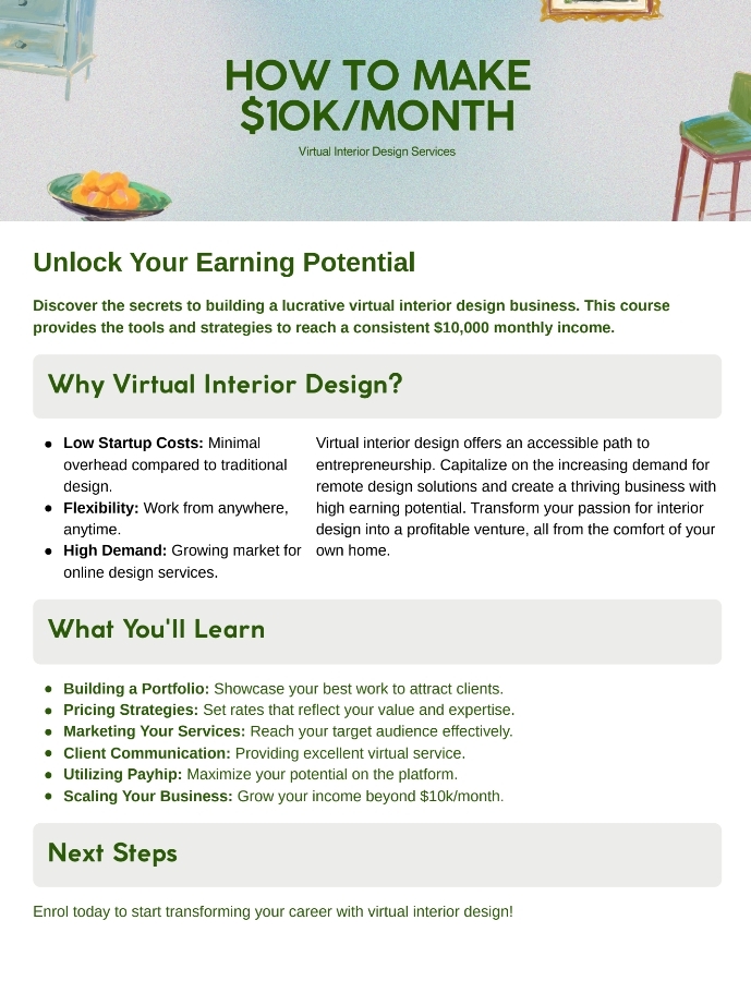 ✨ Start learning today, and discover how to turn your creative passion into a consistent $10k/month income stream with Virtual Interior Design Services. ✨